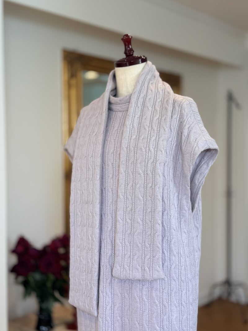 しなやかさと自然な艶が魅力のニットは、ラベンダーの色も、落ち着いた上品な印象に。