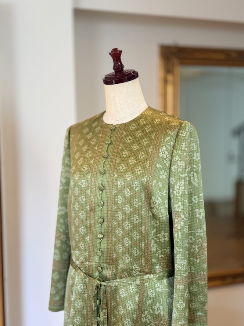 美しいパネル柄を生かし、 ワンピースに仕立てました。